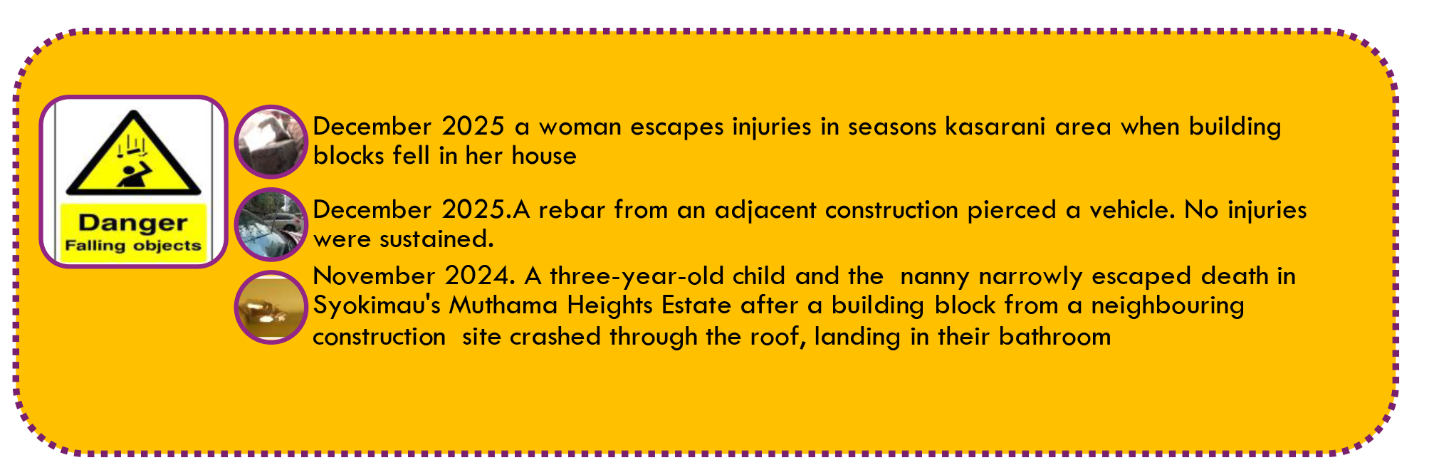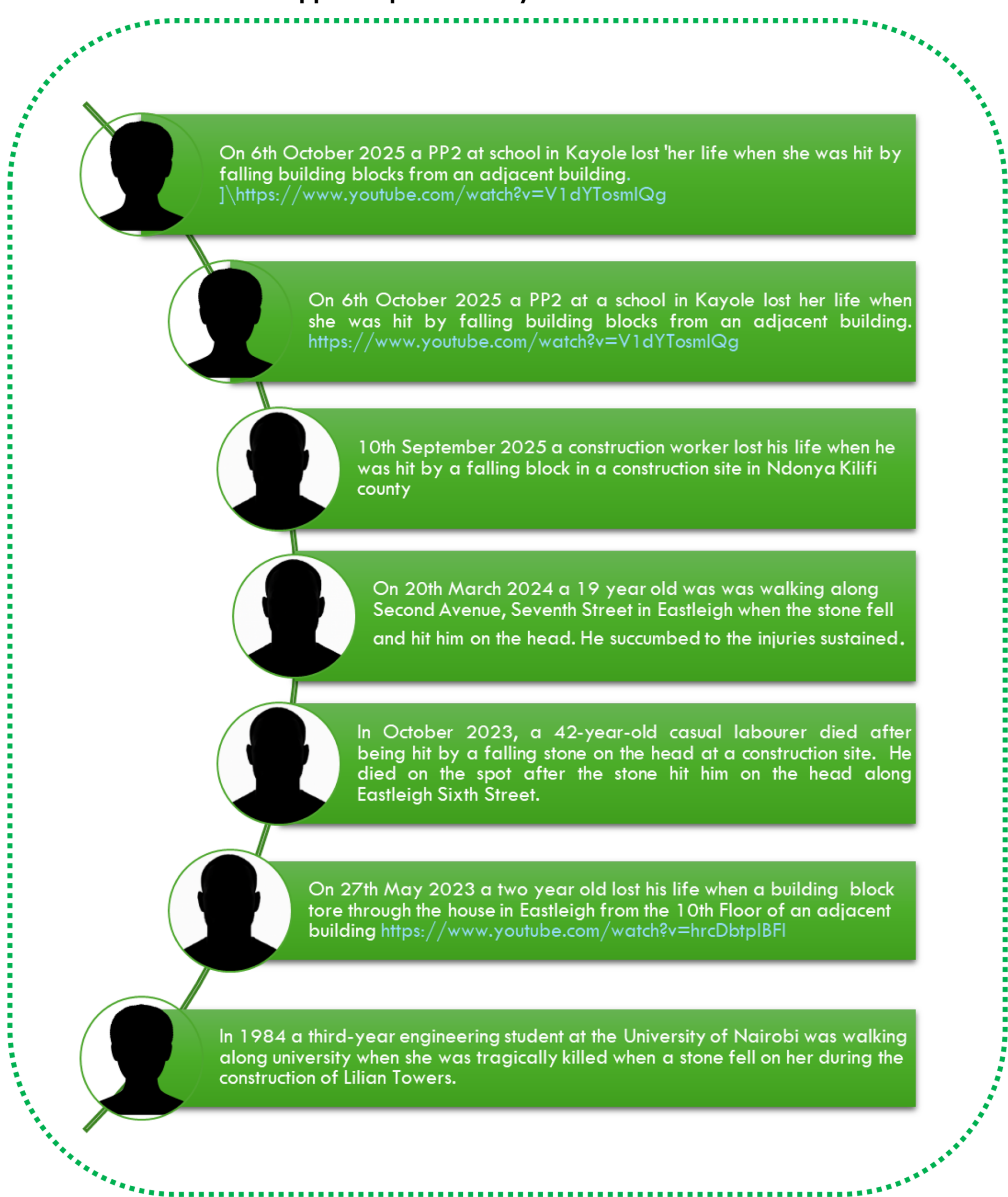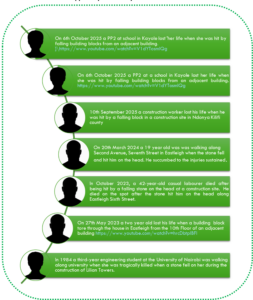 Notable fatalities from dropped objects in Kenya:-